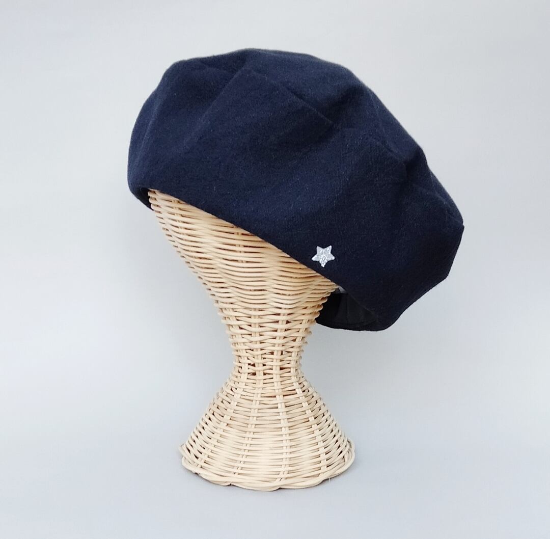 夜空に煌めく一番星 黒ベレー帽 シルバースター コットンリネン 帽子 オーダーメイド S.M.L.LLサイズ