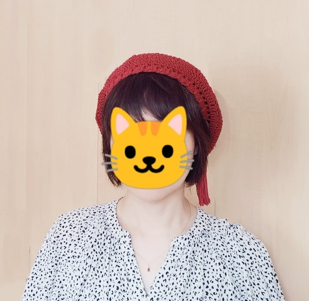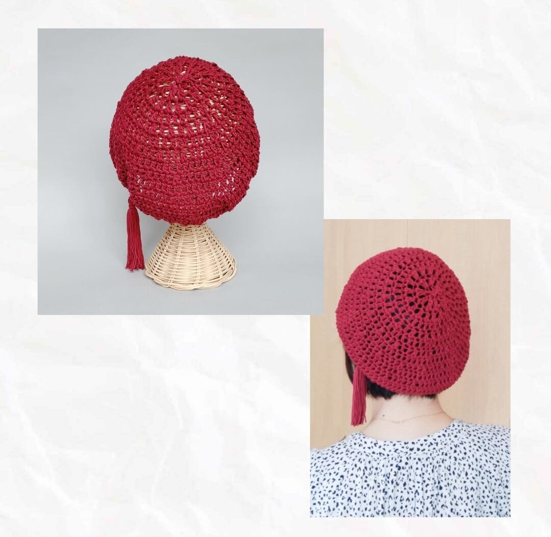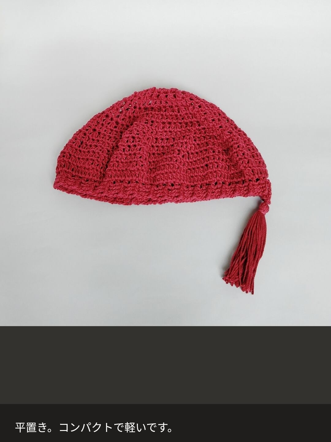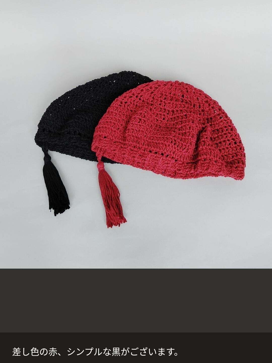 母の日に タッセルつきレッドコットンベレー帽 ニット帽 ビーニー 帽子 手編み 還暦祝い クリスマス プレゼント