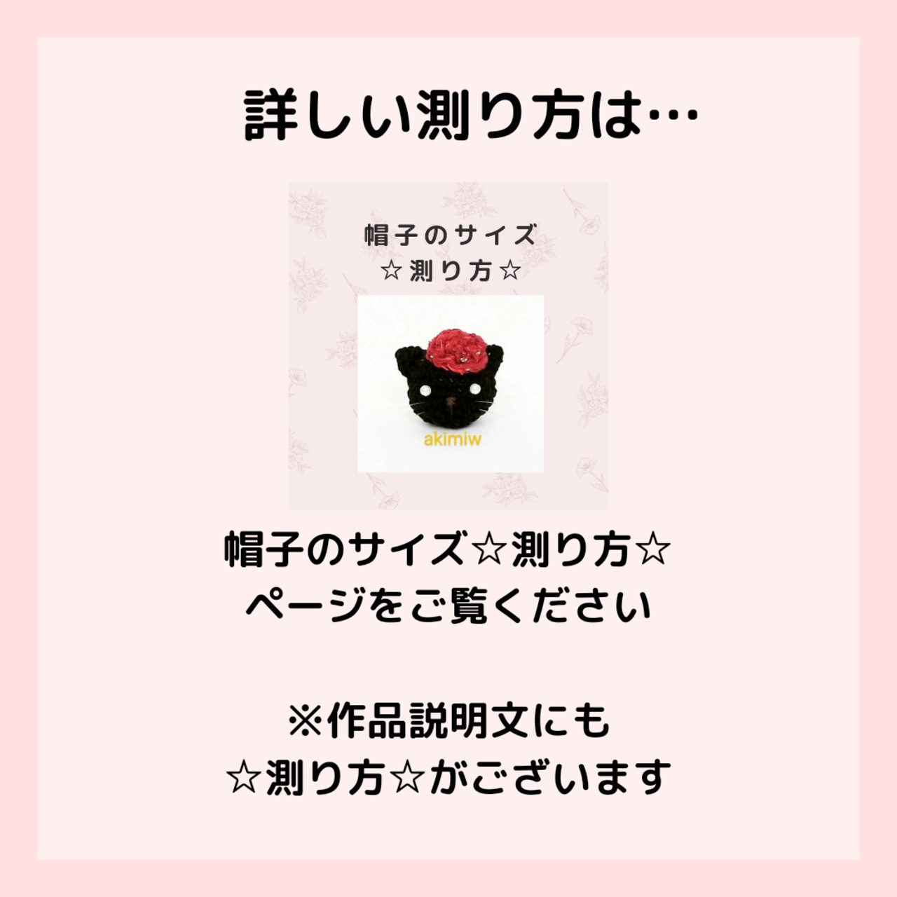 下記の測り方を参考に、ご希望の帽子のサイズをお選びくださいませ。