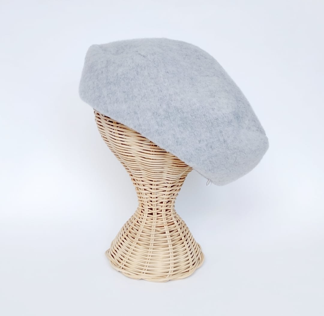 コーデを軽やかに見せるライトグレー ふんわりボリュームウールベレー帽 上品「尾州ウール」チャームが付けられる 帽子 プレゼント クリスマス 秋冬 S.M.L.LLサイズ
