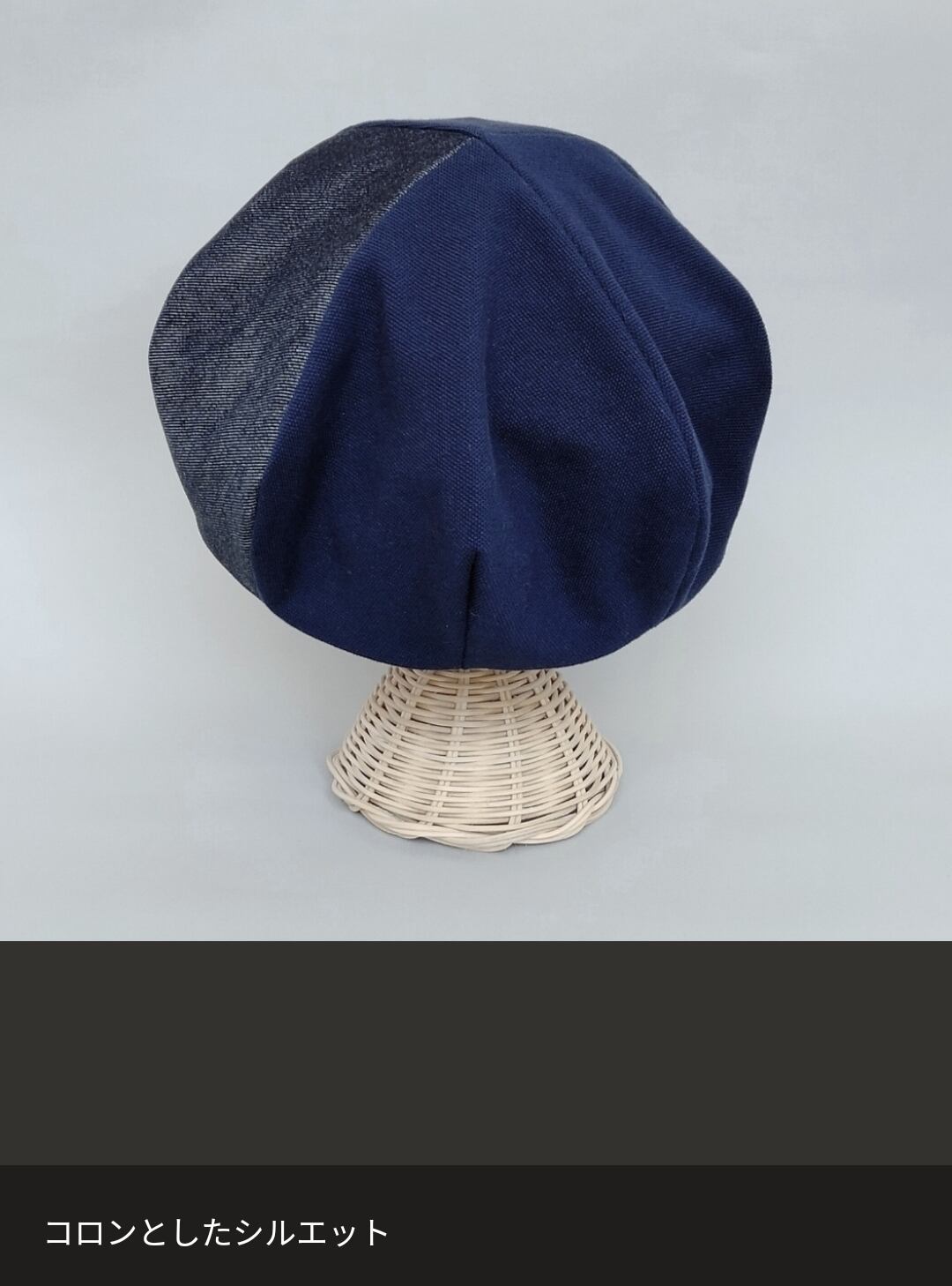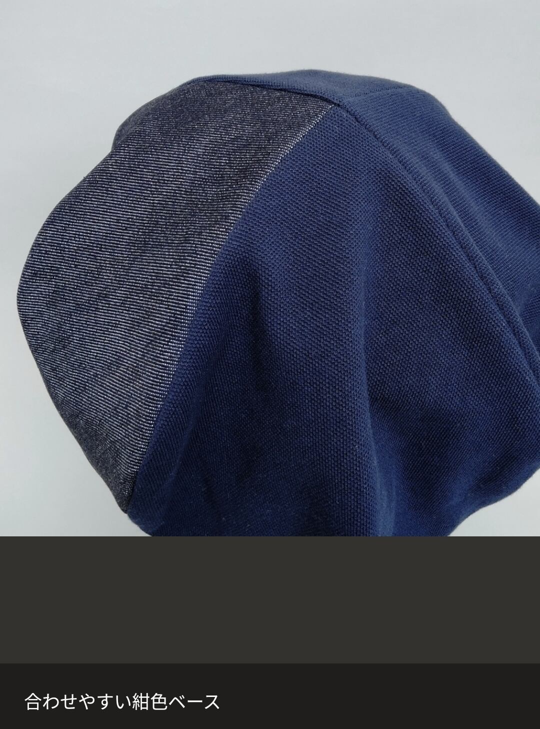 合わせやすい紺色ベレー帽に、デニムを取り入れたベレー帽。