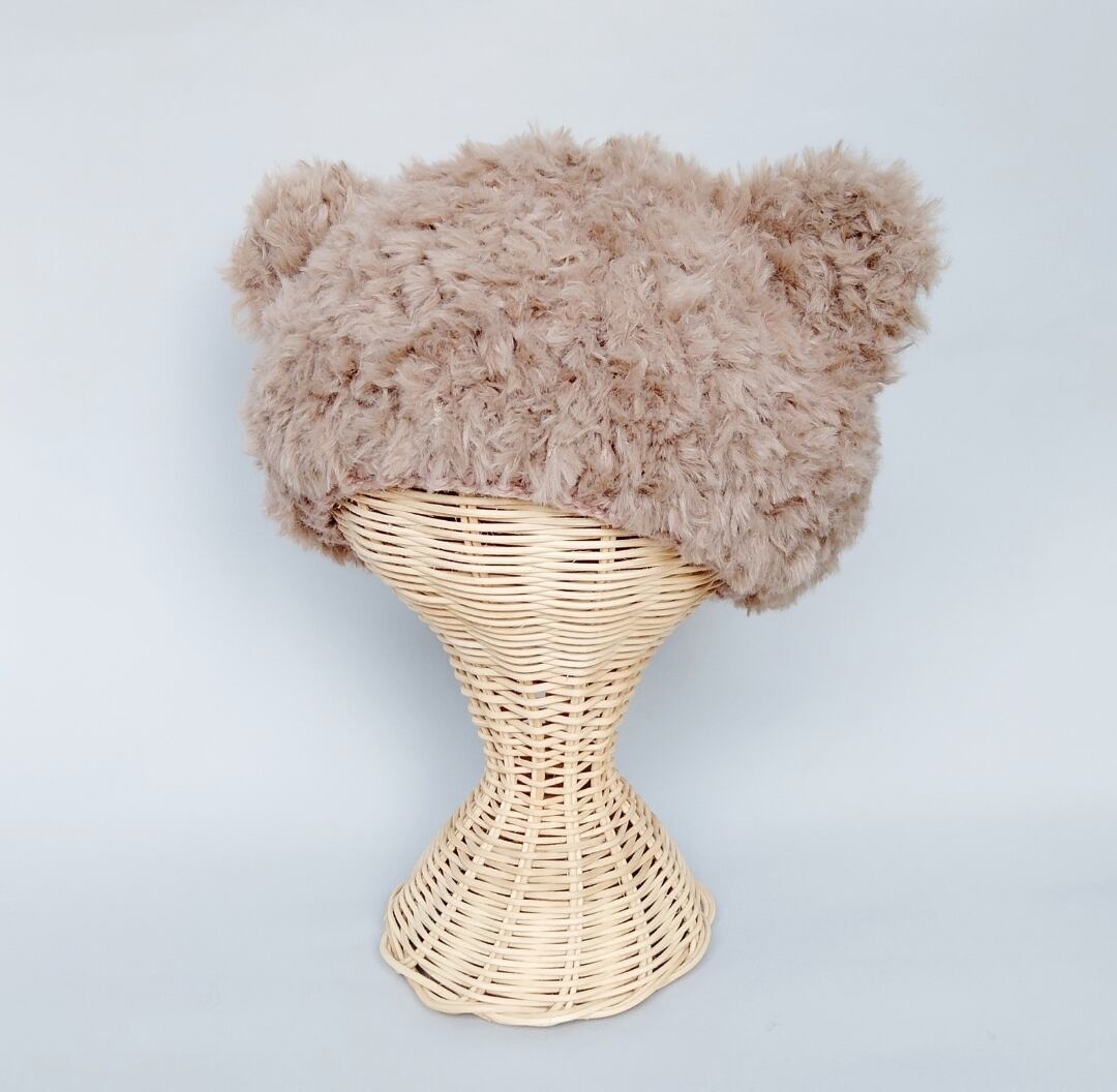 ふわふわ茶猫耳ニット帽 ブラウン 帽子 秋冬 プレゼント