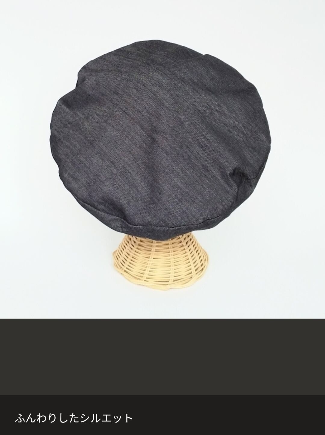 黒のデニム生地を用いたベレー帽です。