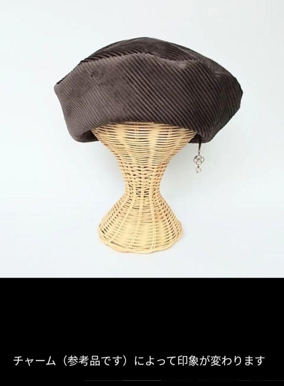 ブラウンコーデュロイベレー帽 チャームが付けられる 帽子 ハンドメイド