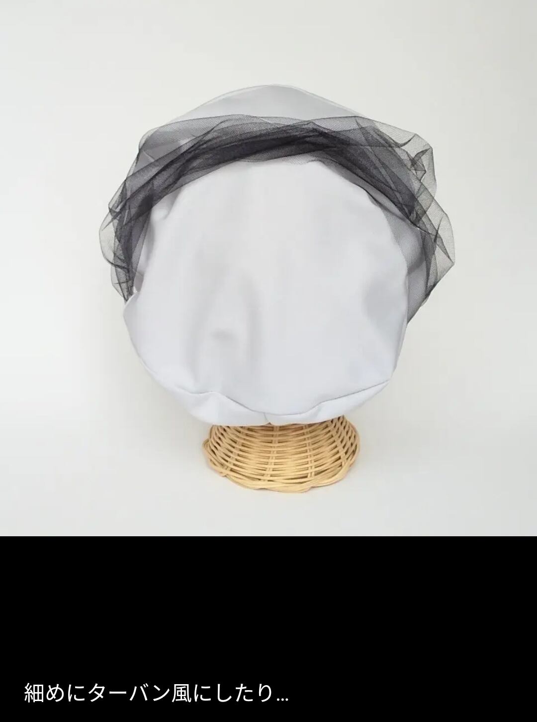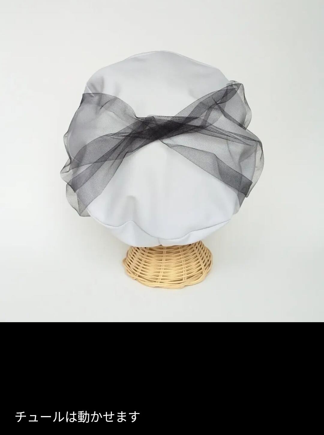 ふんわりしたチュールレースをヴェールのように纏わせたおしゃれベレー帽です。