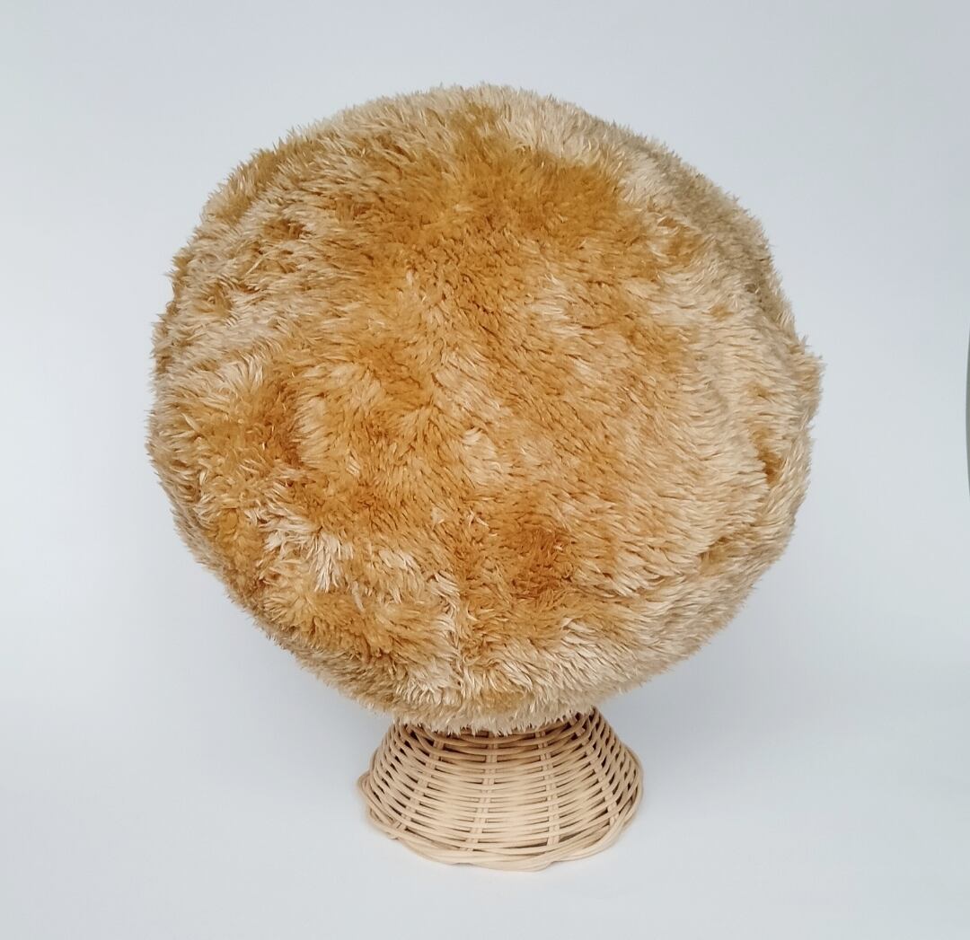 ふわふわ毛並みが特徴のキャメルカラー生地でポカポカ暖かくかぶって頂けます。